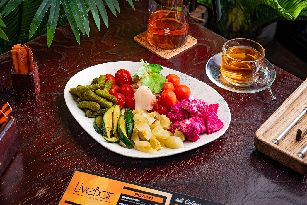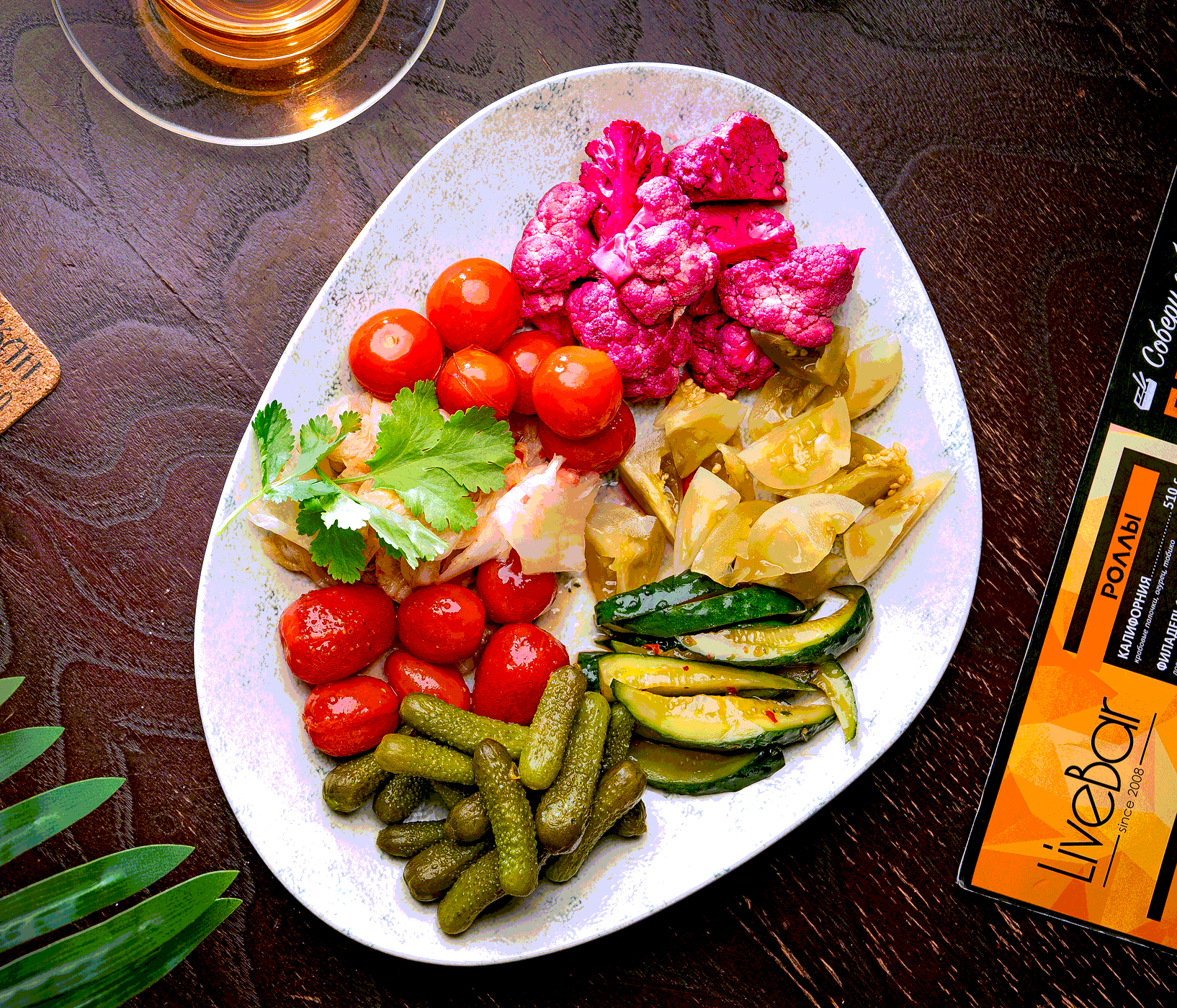Битые огурцы, Черри 2-х видов, Соленые помидоры, Кимчи, Цветная капуста